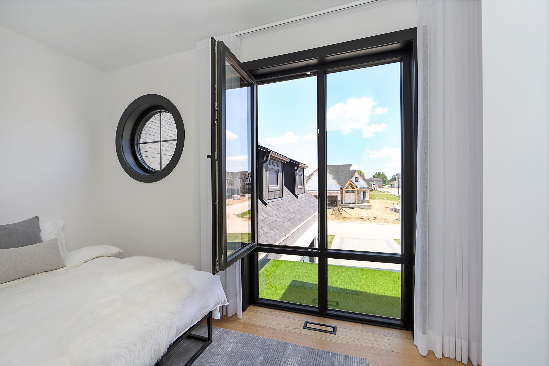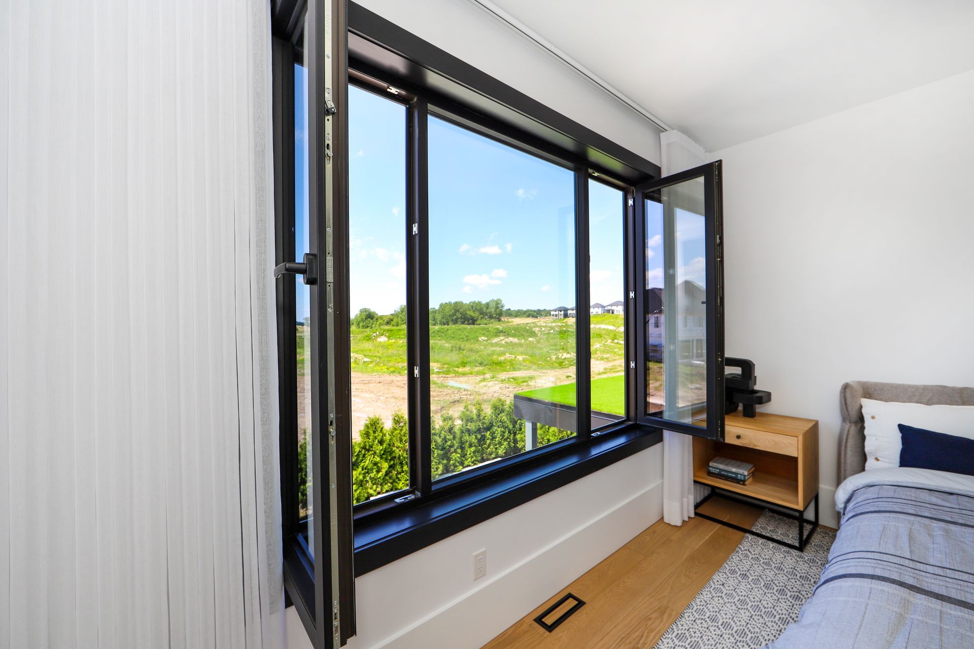 This custom millstone home beautifully showcases the impact of Raven Windows and Doors, merging timeless design with modern elegance. Raven’s floor-to-ceiling windows flood the space with natural light, highlighting each architectural detail and connecting seamlessly to the outdoors. The versatile Tilt and Turn windows add both style and practical ventilation, ensuring fresh air and security.