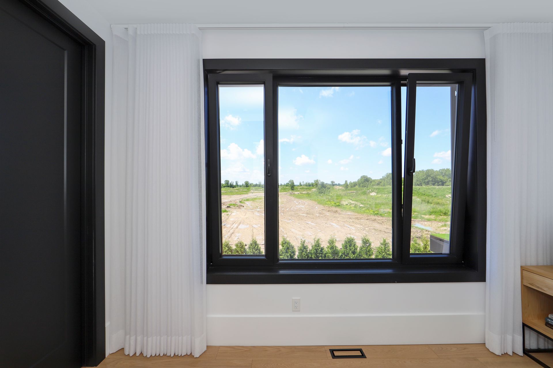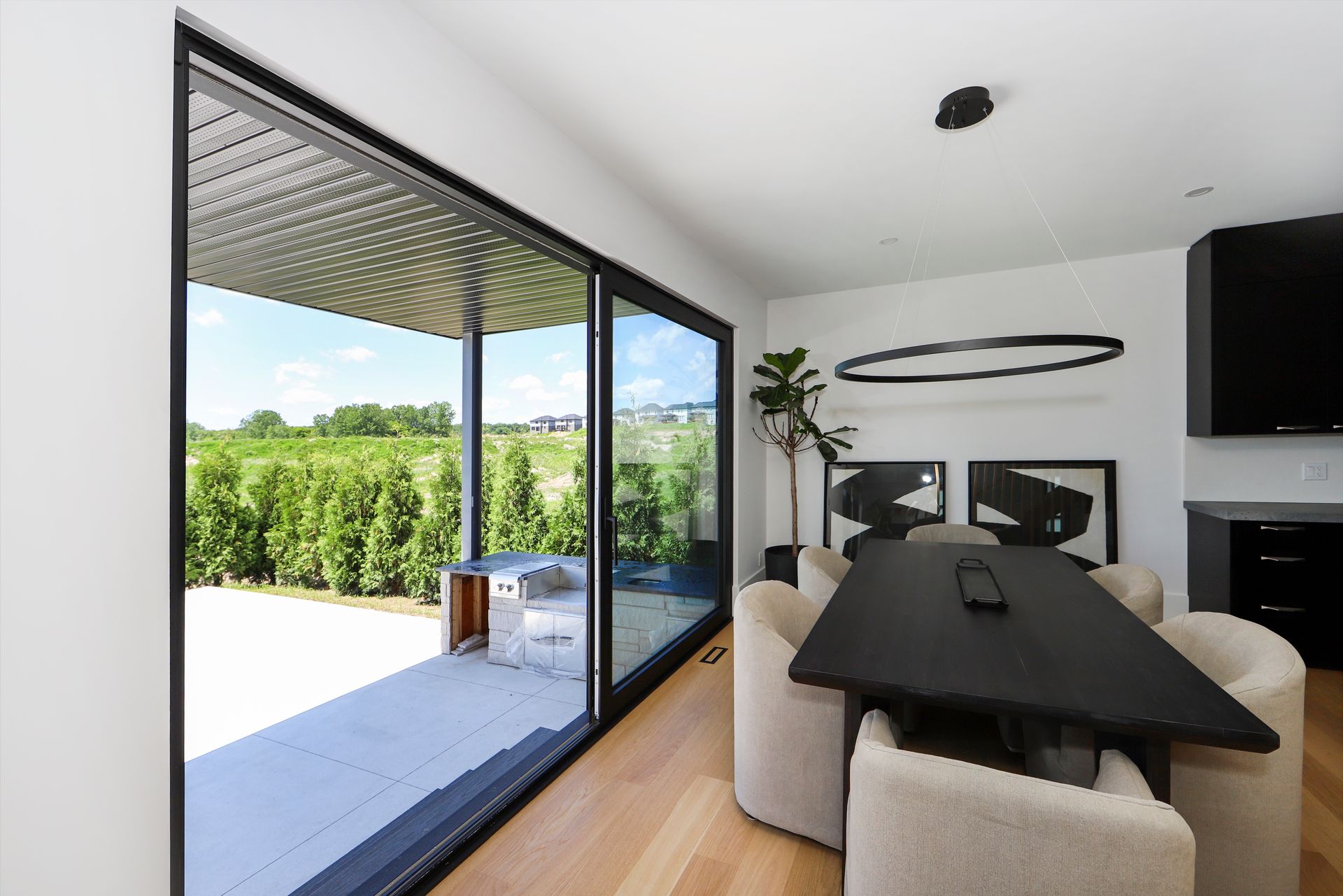Expansive lift and slide patio doors create a smooth transition between indoor and outdoor spaces, enhancing the home’s openness and flow. Altogether, Raven Windows and Doors elevate this home’s character, blending classic charm with contemporary comfort.