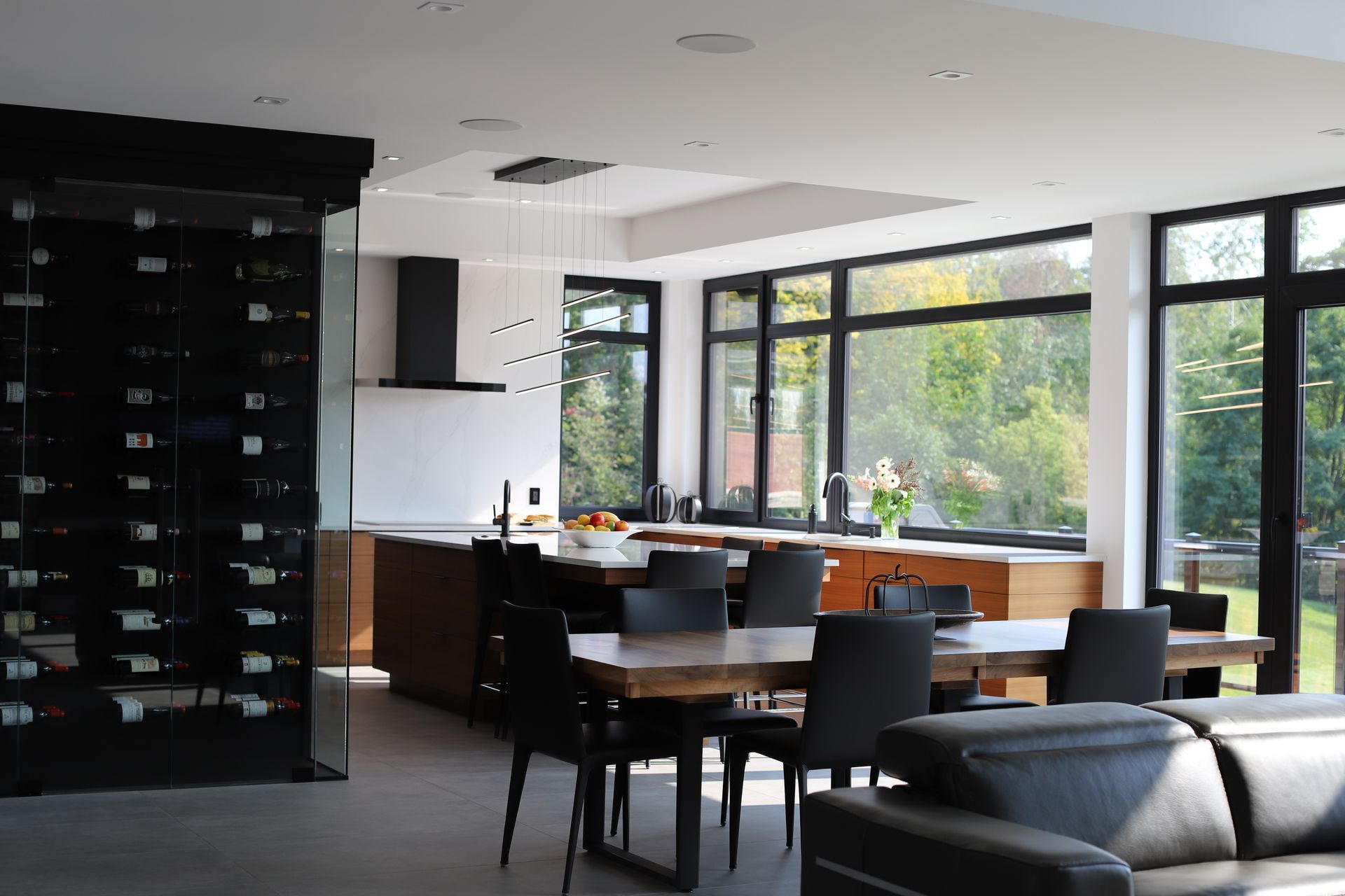 Raven’s large, European windows offer superior quality, security, energy efficiency, and unobstructed views, connecting the modern interior design with nature.
